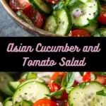 A crisp and refreshing Asian cucumber and tomato salad tossed in a tangy soy-sesame dressing with garlic and a mild chili kick. This easy side dish is light, flavorful, and perfect for making ahead.