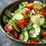 I keep coming back to this Asian cucumber and tomato salad because it is simple, refreshing, and full of vibrant flavor. It is one of those dishes I can prepare ahead and rely on to complement almost any meal while still standing out on its own.