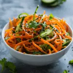 A light and refreshing salad, this Asian Cucumber Carrot Salad brings together crisp cucumber, sweet carrot, and a tangy sesame-soy dressing. I love how quick it is to prepare, and it always adds a burst of freshness to my meals. Whether I serve it alongside a stir-fry or enjoy it as a midday snack, this salad always hits the spot.