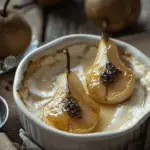 I bake the pears for about 8 minutes, just until they are slightly softened and glossy. After that, I let them cool for 1 to 2 minutes so they stay warm but are easier to handle.