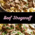 I find this classic Beef Stroganoff to be the ultimate comfort food. The creamy mushroom sauce, tender beef, and warm egg noodles create a rich and satisfying meal that I am always proud to serve. Whether I am making it for a weeknight dinner or a special gathering, this recipe never fails to deliver comforting, homestyle flavor.