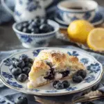 Tender and fluffy blueberry scones made with creamy Greek yogurt for a moist, bakery-style texture. Bursting with fresh blueberries and a hint of vanilla and lemon, these scones are perfect for breakfast, brunch, or a cozy afternoon treat.
