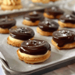 Mini golden cookie cups filled with silky vanilla custard and topped with rich chocolate ganache — these Boston Cream Pie Cookie Bites are a fun, poppable twist on the classic dessert, perfect for parties or sweet cravings.