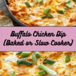 A warm, creamy, and cheesy Buffalo Chicken Dip made with shredded chicken, tangy buffalo sauce, ranch dressing, and melted cheeses. Perfect for parties, game days, or family gatherings, and easily prepared in the oven or slow cooker.