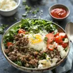 I make these Burger Bowls when I want all the flavor of a classic burger in a lighter, fresher way. This recipe combines juicy seasoned ground beef, crisp lettuce, tomatoes, pickles, cheddar cheese, and a tangy sauce in one easy bowl that feels both satisfying and simple.
