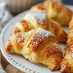 I store leftover croissants in an airtight container at room temperature for up to 2 days or in the fridge for up to 5 days. For longer storage, I freeze them in a zip-top bag. To reheat, I bake them at 300°F (150°C) for 8–10 minutes. This brings back that crisp, fresh-from-the-oven texture.