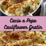 I turn a classic Italian flavor combination into a rich and comforting vegetable side with this Cacio e Pepe Cauliflower Gratin. I roast tender cauliflower until golden, then coat it in a creamy, peppery cheese sauce made with nutty Manchego and Parmesan before baking it to bubbly perfection. It’s one of my favorite low-carb, vegetarian dishes when I want something cozy yet elegant.