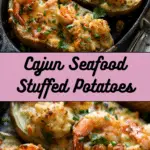 These Cajun Seafood Stuffed Potatoes are a spicy, hearty fusion of comfort food and bold coastal flavors. Tender baked potatoes are filled with a rich mix of shrimp, crab, scallops, and vegetables, all seasoned with smoky Cajun spices. Topped optionally with melted cheddar and served warm with lemon wedges, this dish is the perfect way to upgrade the classic baked potato into a satisfying seafood dinner.
