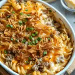 This cheesy beef and noodle casserole is one of those recipes I turn to when I want something hearty, flavorful, and family-friendly. It’s simple to make, endlessly adaptable, and always delivers comfort in every bite. From the creamy base to the crunchy onion topping, it’s a crowd-pleaser that never gets old.