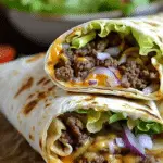 These Cheesy Big Mac Wraps bring all the classic fast-food burger flavors—seasoned beef, tangy special sauce, crisp lettuce, pickles, and melty cheese—wrapped in a warm tortilla for an easy homemade lunch or dinner.