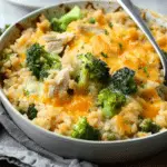 This cheesy broccoli, chicken, and rice casserole is a comforting, all-in-one meal made with wholesome ingredients like chicken, broccoli, and rice, all tied together with a creamy, cheesy sauce. Perfect for busy weeknights or cozy weekends.