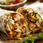 These Chicken Burrito Wraps are a quick, hearty, and customizable meal filled with shredded chicken, rice, beans, corn, tomatoes, cheese, and a creamy, spiced sauce, all wrapped in a warm flour tortilla and optionally toasted for added crunch.