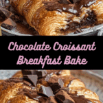 Flaky croissants are soaked in a creamy vanilla custard and layered with rich chocolate, then baked to golden perfection in this easy and elegant Chocolate Croissant Breakfast Bake. Perfect for brunch, holidays, or a cozy weekend morning.