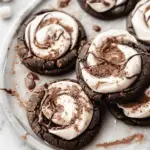 These Chocolate Marshmallow Swirl Cookies are rich, chewy, and gooey with melty chocolate chips and pockets of marshmallow, topped with an optional swirl of marshmallow fluff for a bakery-style finish.