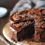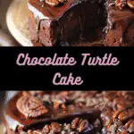 A rich, indulgent Chocolate Turtle Cake layered with moist chocolate cake, gooey caramel, crunchy pecans, and melty chocolate chips. Perfect for gatherings or satisfying chocolate cravings.