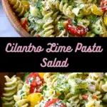 A fresh and vibrant pasta salad tossed in a zesty lime dressing with crisp vegetables and cilantro, perfect as a light main dish or flavorful side.