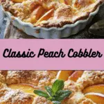 A warm and comforting classic peach cobbler with juicy cinnamon-spiced peaches and a soft golden topping. Perfect for summer gatherings or a cozy homemade dessert.