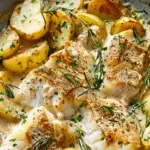 Tender cod fillets gently cooked in a silky rosemary-infused cream sauce with buttery potatoes. This comforting yet elegant one-pan dish delivers restaurant-quality flavor with simple ingredients.