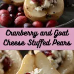 Cranberry and Goat Cheese Stuffed Pears are a beautiful dessert that feels both comforting and elegant. I love how the soft baked pears, creamy cheese filling, tart cranberry topping, and crunchy oat crumble all come together in one delicious bite. Whether I serve them for a holiday gathering or a quiet fall dinner, this recipe always feels special and memorable.