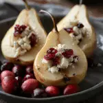 Cranberry and Goat Cheese Stuffed Pears are one of my favorite elegant desserts to make when I want something beautiful, cozy, and full of fall flavor. I bake tender pear halves until they are just soft, then I fill them with creamy goat cheese, sweet-tart cranberry sauce, and a crisp cinnamon oat topping. The result feels special enough for a holiday table, yet simple enough for me to make anytime I want a warm seasonal dessert.