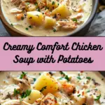 Creamy Comfort Chicken Soup with Potatoes is a cozy, one-pot meal made with tender chicken, hearty potatoes, and classic vegetables in a fragrant herb broth. Finished with a splash of cream for richness, it’s the perfect dish for chilly days or when you need a comforting bowl of nourishment.