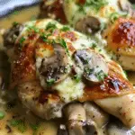 Juicy chicken breasts are stuffed with a creamy garlic mushroom and cheese filling, then seared and baked until golden and tender. This comforting yet elegant dish is packed with savory herbs and rich, melty flavor.