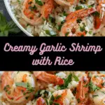 Creamy Garlic Shrimp with Rice is a quick, indulgent dish featuring tender shrimp simmered in a garlicky Parmesan cream sauce, served over warm white rice. It’s rich, flavorful, and easy enough for a weeknight dinner.