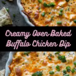 This Creamy Oven‑Baked Buffalo Chicken Dip is a cheesy, spicy, and creamy hot appetizer made with shredded chicken, cream cheese, ranch, buffalo sauce, and cheddar cheese. Perfect for game day, parties, or any gathering.