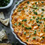 This Creamy Oven‑Baked Buffalo Chicken Dip is the ultimate hot appetizer I reach for when I want something bold, cheesy, and impossible to stop dipping into. Loaded with shredded chicken, rich cream cheese, ranch, buffalo sauce, and plenty of cheddar, this dip is a guaranteed hit for game day, parties, or just when I’m craving a warm, spicy snack. It bakes in under 30 minutes, making it a quick and easy go-to for any gathering.