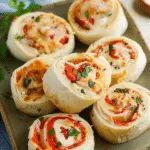 These creamy ranch pinwheels with roasted red peppers are a no-cook appetizer or snack, featuring a savory ranch-flavored cream cheese spread, shredded cheese, and vibrant veggies all wrapped in soft tortillas. Perfect for parties, picnics, or lunchboxes.