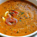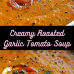 This creamy roasted garlic tomato soup is rich, comforting, and full of deep roasted flavor. Sweet caramelized tomatoes and mellow garlic blend beautifully with cream for a smooth and velvety finish.