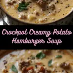 This Crockpot Creamy Potato Hamburger Soup is hearty, cheesy, and packed with ground beef, potatoes, and vegetables—perfect comfort food for chilly days or easy family dinners.
