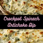 This Crockpot Spinach Artichoke Dip is a warm, cheesy, and crowd-pleasing appetizer made with tender spinach, artichoke hearts, and a rich blend of cheeses, all slow-cooked to melty perfection.