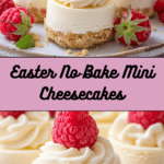 These Easter No‑Bake Mini Cheesecakes are easy, colorful treats perfect for spring. With a buttery graham cracker crust, creamy cheesecake filling, and festive toppings, they’re fun to make and even more fun to eat.