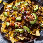 Crispy tortilla chips layered with savory ground beef, melted cheese, and fresh toppings make this nacho recipe a go-to for game nights, casual dinners, or anytime I’m craving something hearty and satisfying. It’s simple, customizable, and always a hit.