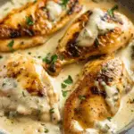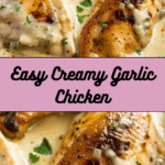 This easy creamy garlic chicken recipe is a quick, flavorful dish that delivers restaurant-style quality with minimal effort. Juicy, pan-seared chicken breasts are smothered in a velvety garlic-Parmesan cream sauce—perfect for weeknights when I want something hearty and comforting, yet elegant enough to impress.