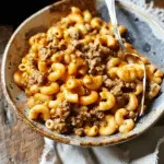 A creamy, cheesy one-pot pasta dish that’s a homemade version of the classic Hamburger Helper — healthier, quick to make, and packed with nostalgic flavor.