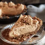 I store this pie covered in the refrigerator for up to 4 days if I want a softer texture. For a firmer, more frozen-style dessert, I keep it in the freezer for up to 2 weeks and let it sit out for a few minutes before slicing. Since this is a no-bake chilled dessert, I do not reheat it. I simply let it rest at room temperature for about 10 minutes before serving.