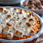 This easy sweet potato casserole with marshmallows is a classic holiday side dish featuring creamy mashed sweet potatoes mixed with warm spices and brown sugar, topped with golden, gooey marshmallows. It’s the perfect comforting addition to Thanksgiving or any festive meal.
