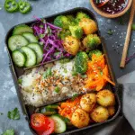 A colorful, nourishing, and simple vegan lunch that’s perfect for busy school mornings or workdays. These easy bento boxes are full of variety—crispy roasted chickpeas, fresh veggies, juicy fruits, and a sweet treat—making lunchtime something I actually look forward to. It’s plant-based, delicious, and easy to prep in advance.