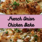 I enjoy making this French Onion Chicken Bake because it transforms simple ingredients into a deeply flavorful and comforting meal. The caramelized onions and melted cheese create a rich topping that pairs perfectly with the tender chicken. Whether I serve it with mashed potatoes, rice, or crusty bread, I always end up with a satisfying dinner that feels both rustic and special.