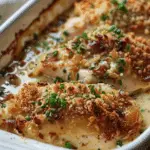 I love making this French Onion Chicken Bake when I want something cozy, flavorful, and easy to prepare. Tender chicken breasts are topped with sweet caramelized onions, rich French onion soup, and melted Swiss or Gruyère cheese, then baked until perfectly golden and bubbly. It’s a comforting oven dish that brings classic French onion flavors into a satisfying main course.