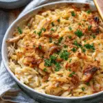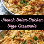 This French Onion Chicken Orzo Casserole is a warm, satisfying meal that blends the bold flavors of caramelized onions and creamy pasta in one comforting bake. I love how easy it is to prep ahead and how versatile it can be with simple swaps. Whether I’m feeding my family or looking for something cozy to curl up with on a cold night, this dish never disappoints.