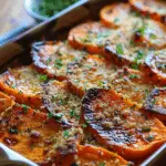 A rich, comforting side dish made with thinly sliced sweet potatoes baked in a creamy garlic butter sauce and topped with golden, bubbly parmesan cheese. Perfect for holidays or cozy weeknight dinners.