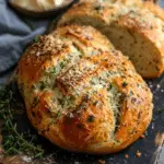A quick, savory, no-yeast bread packed with garlic, Parmesan cheese, and aromatic herbs. Perfect alongside soup, pasta, or as a standalone snack.