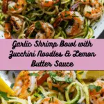 This Garlic Shrimp Bowl with Zucchini Noodles & Lemon Butter Sauce is light yet satisfying, featuring juicy shrimp, tender zucchini noodles, and a bright, silky lemon butter sauce. It is a fresh and flavorful meal perfect for a wholesome dinner.