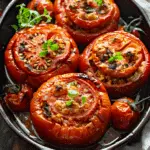 Gemista is a traditional Greek dish featuring tomatoes and peppers stuffed with a fragrant mixture of rice, herbs, and vegetables, then baked until tender. Naturally vegan and gluten-free, it’s a wholesome and flavorful Mediterranean comfort food.