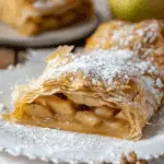 To store leftovers, I keep the strudel in an airtight container at room temperature for up to 2 days, or refrigerate for up to 5 days. To reheat, I place slices in a 300°F (150°C) oven for 10–12 minutes until warmed through and the crust is crisp again. Microwaving works too, though the crust will be softer.