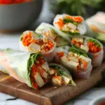 I love switching things up depending on what’s in my fridge. Sometimes I use tempeh instead of tofu for a different texture. When I want a nut-free option, I make the dipping sauce with sunflower seed butter or tahini. For a spicy kick, I’ll add sliced jalapeños or a drizzle of chili oil inside the roll. Mango slices or avocado add a sweet and creamy twist, and if I’m short on herbs, I just load up on extra veggies.