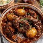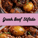 Greek Beef Stifado is a traditional Greek stew featuring tender chunks of beef, sweet pearl onions, and a rich tomato sauce infused with warm spices like cinnamon, cloves, and allspice. Slow-cooked to perfection, it’s a comforting and deeply flavorful dish perfect for cold nights or family dinners.